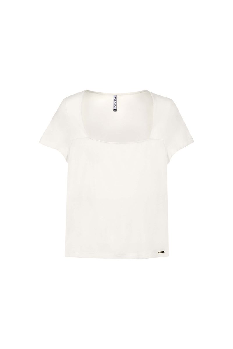 AdultoFemininoBlusas FemininoBlusa Feminina Decote Quadrado Marialícia Bege