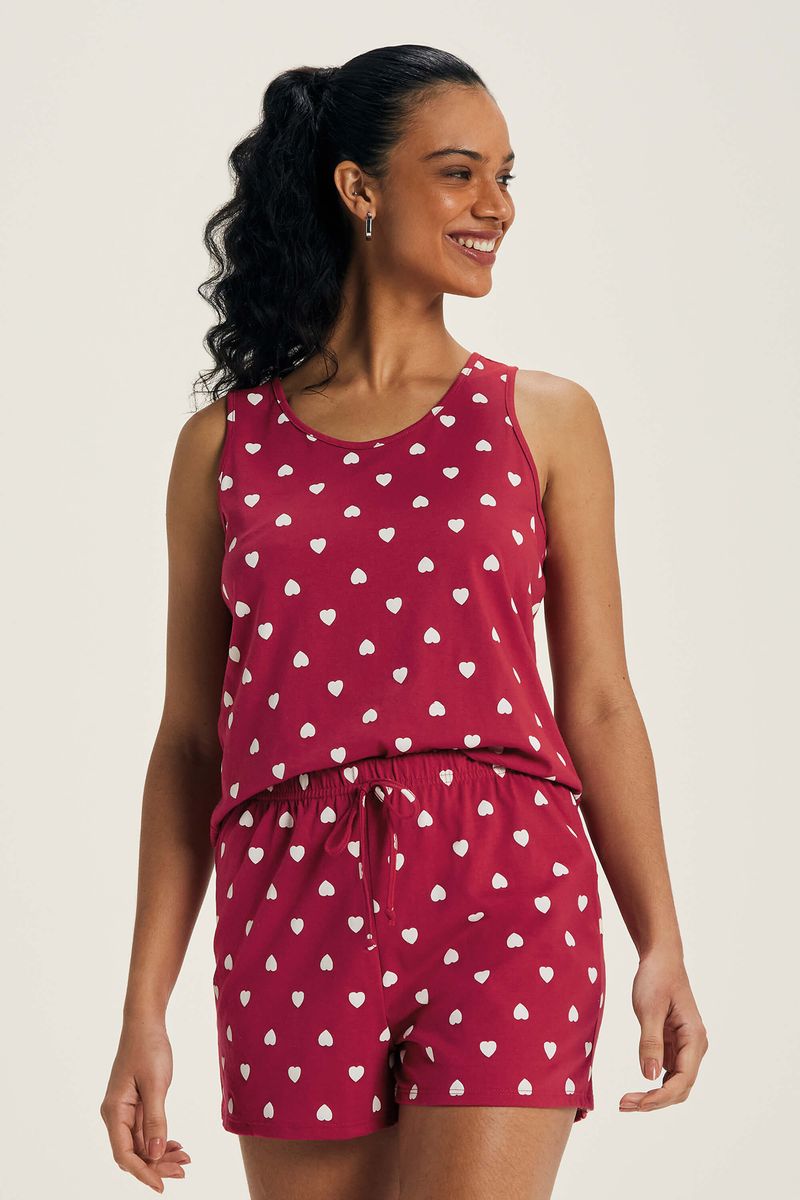 AdultoFemininoPijamas FemininoPijama Feminino Curto Meia Malha Marialícia Vermelho