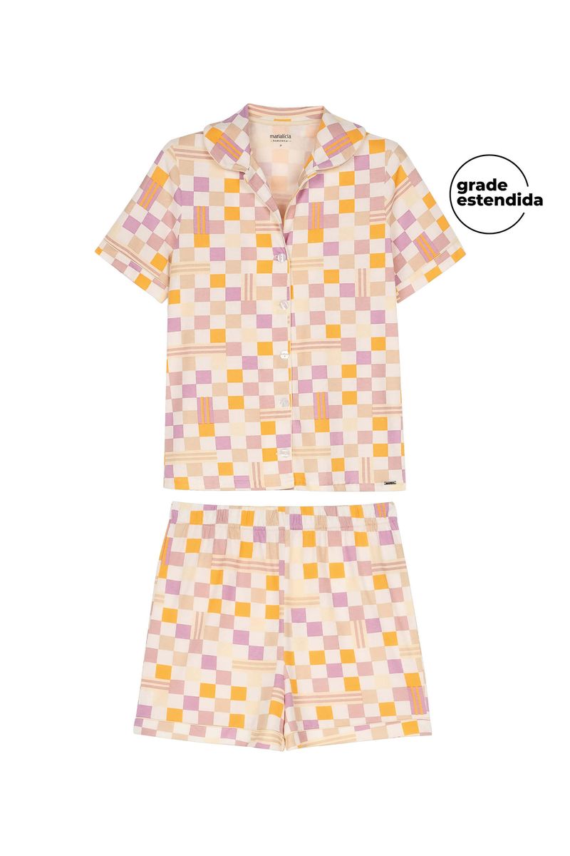 AdultoFemininoPijamas FemininoPijama Feminino Curto Com Vivo Contraste Marialícia Bege