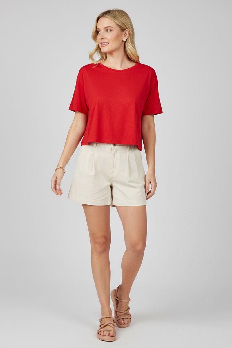 AdultoFemininoBlusas FemininoBlusa Curta Feminina Básica Marialícia Vermelho