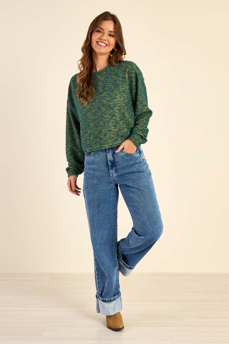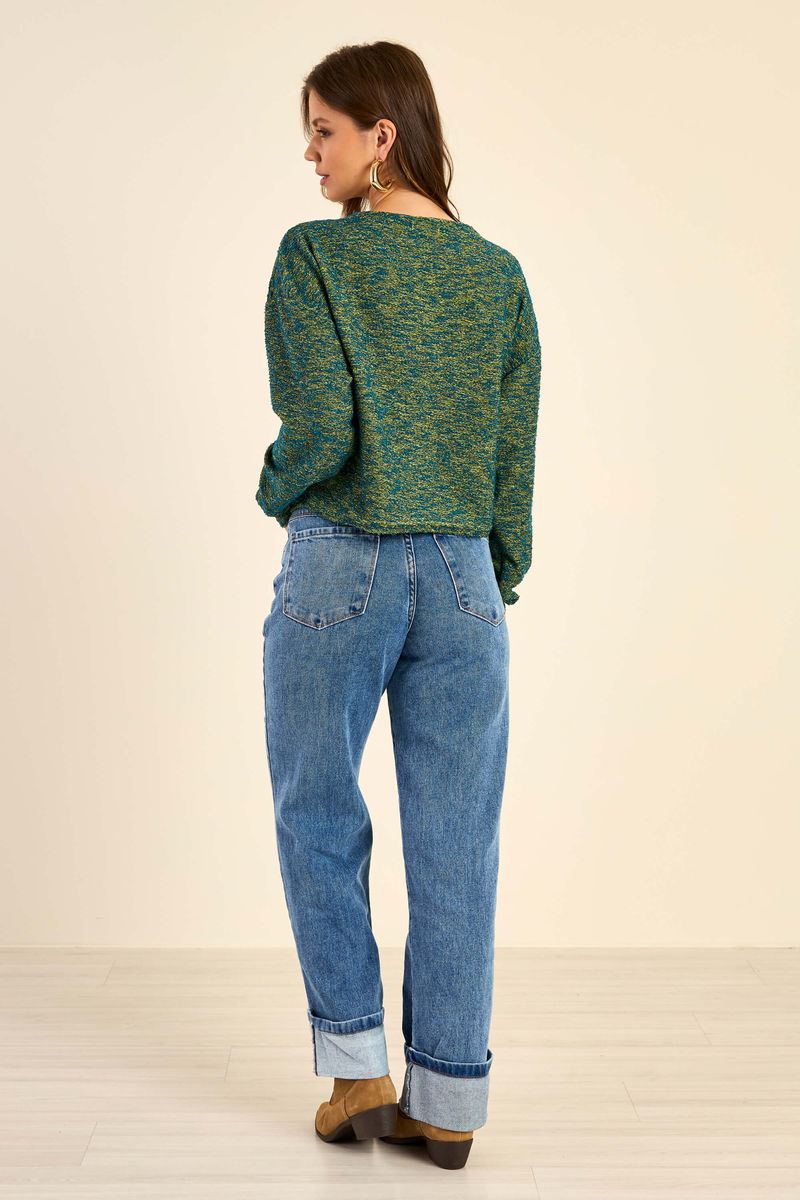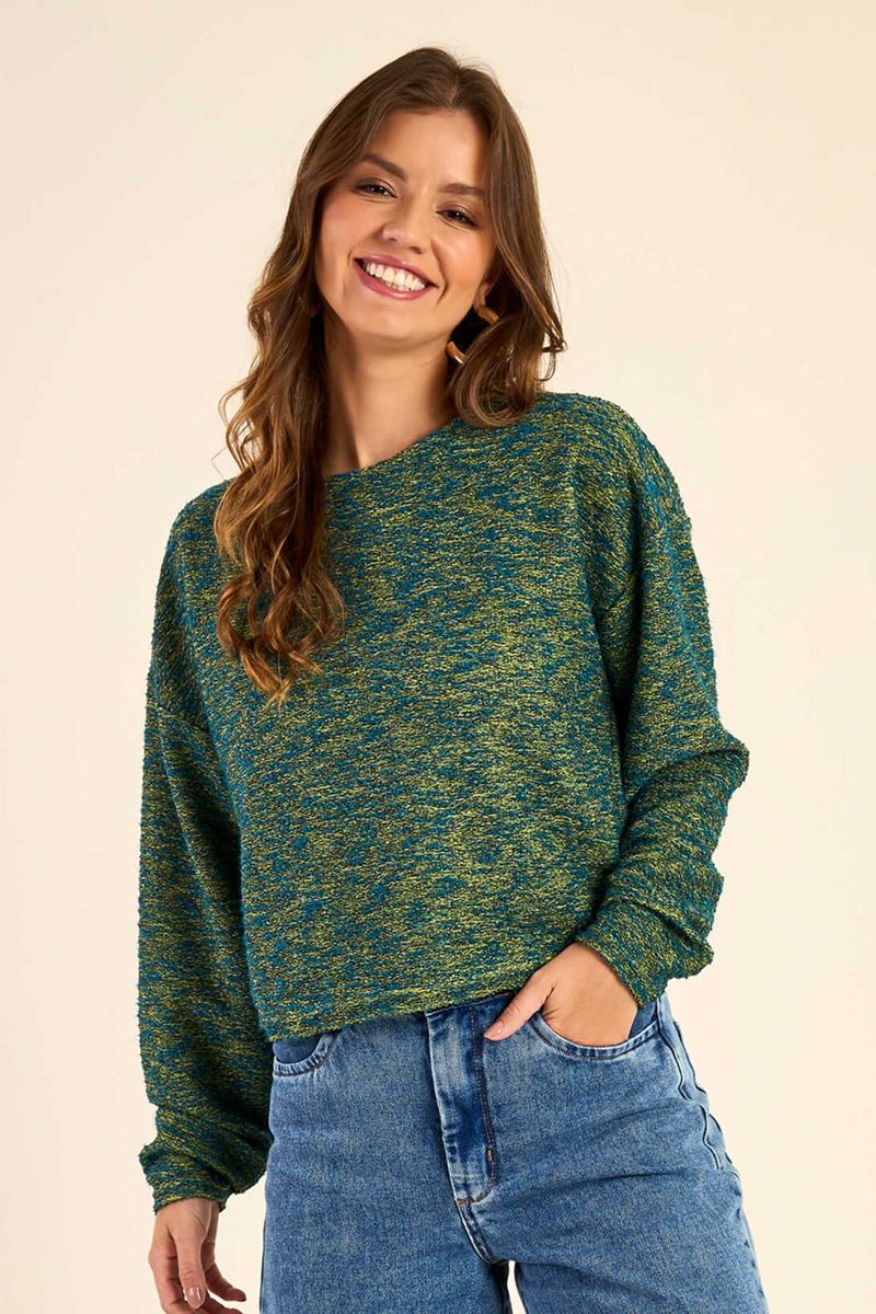 Blusão Feminino Tweed Mesclado Marialícia Verde REF: 184166-6491
