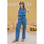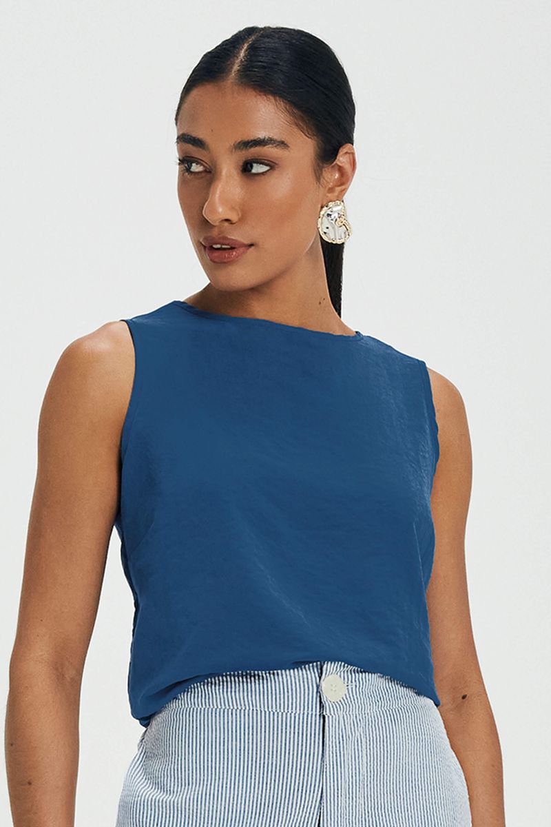 Regata Feminina Tecido Acetinado Marialícia Azul REF: 184175-6025