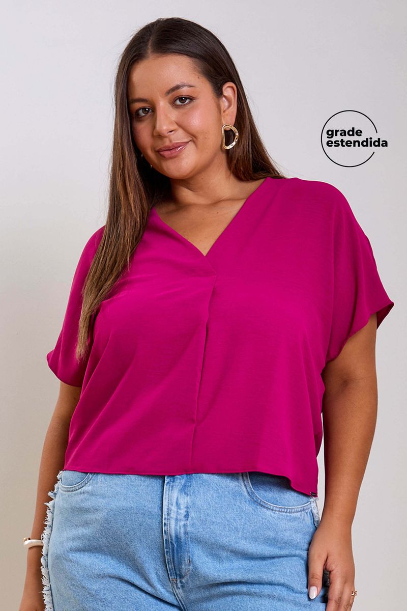 AdultoFemininoBlusas FemininoBlusa Feminina Texturizada Decote V Marialícia Rosa