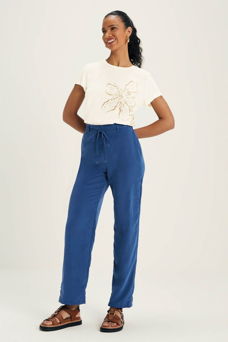Calça Feminina Tecido Acetinado Marialícia Azul REF: 184185-6025