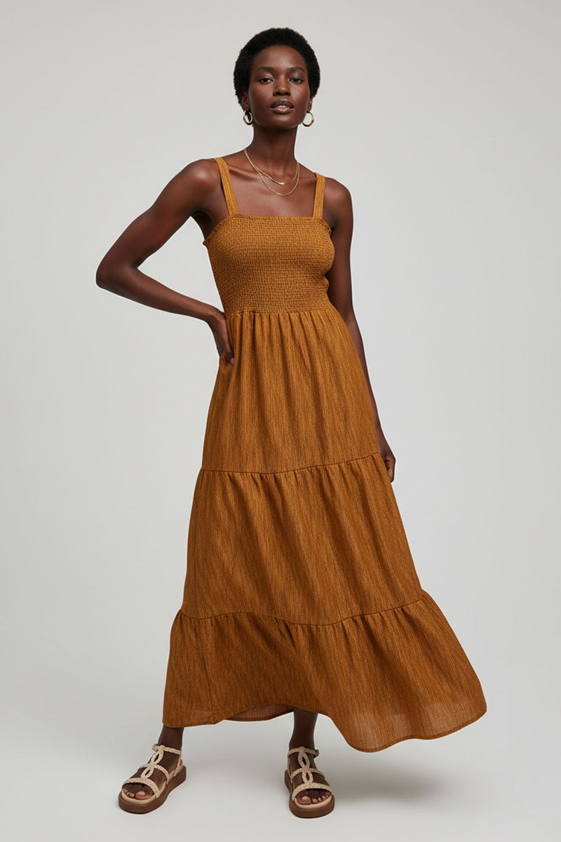 AdultoFemininoVestidos FemininoVestido Longo Com Alças Feminino Marialícia Laranja Escuro
