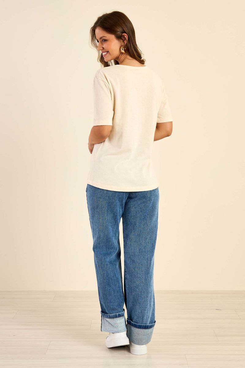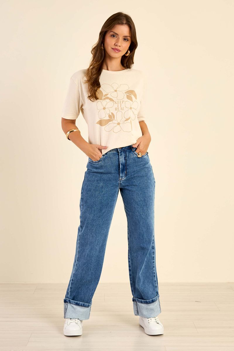 T-Shirt Feminina Flores Marialícia Bege REF: 184196-2037