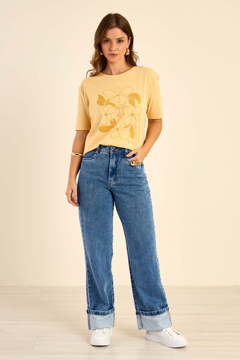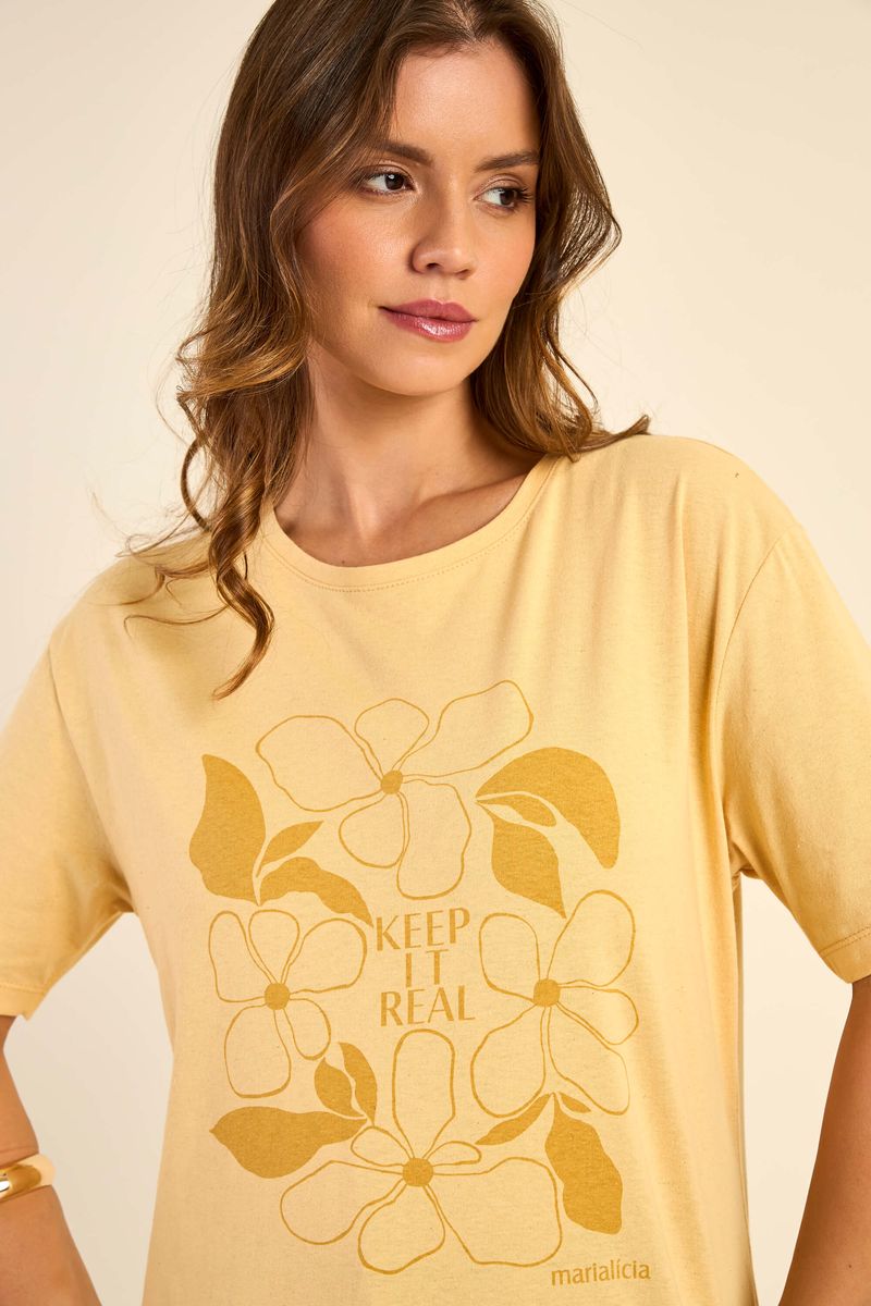 T-Shirt Feminina Flores Marialícia Amarelo REF: 184196-3016