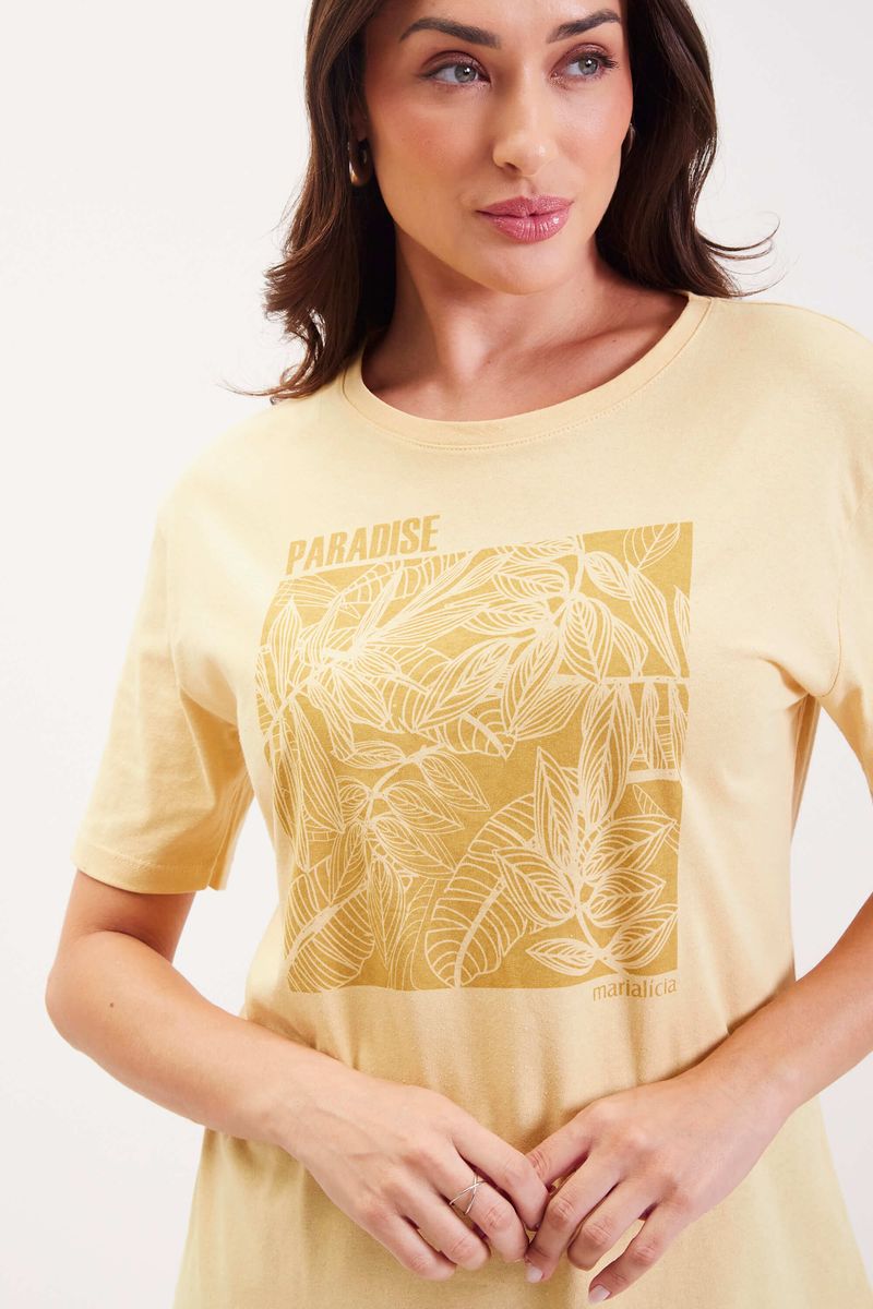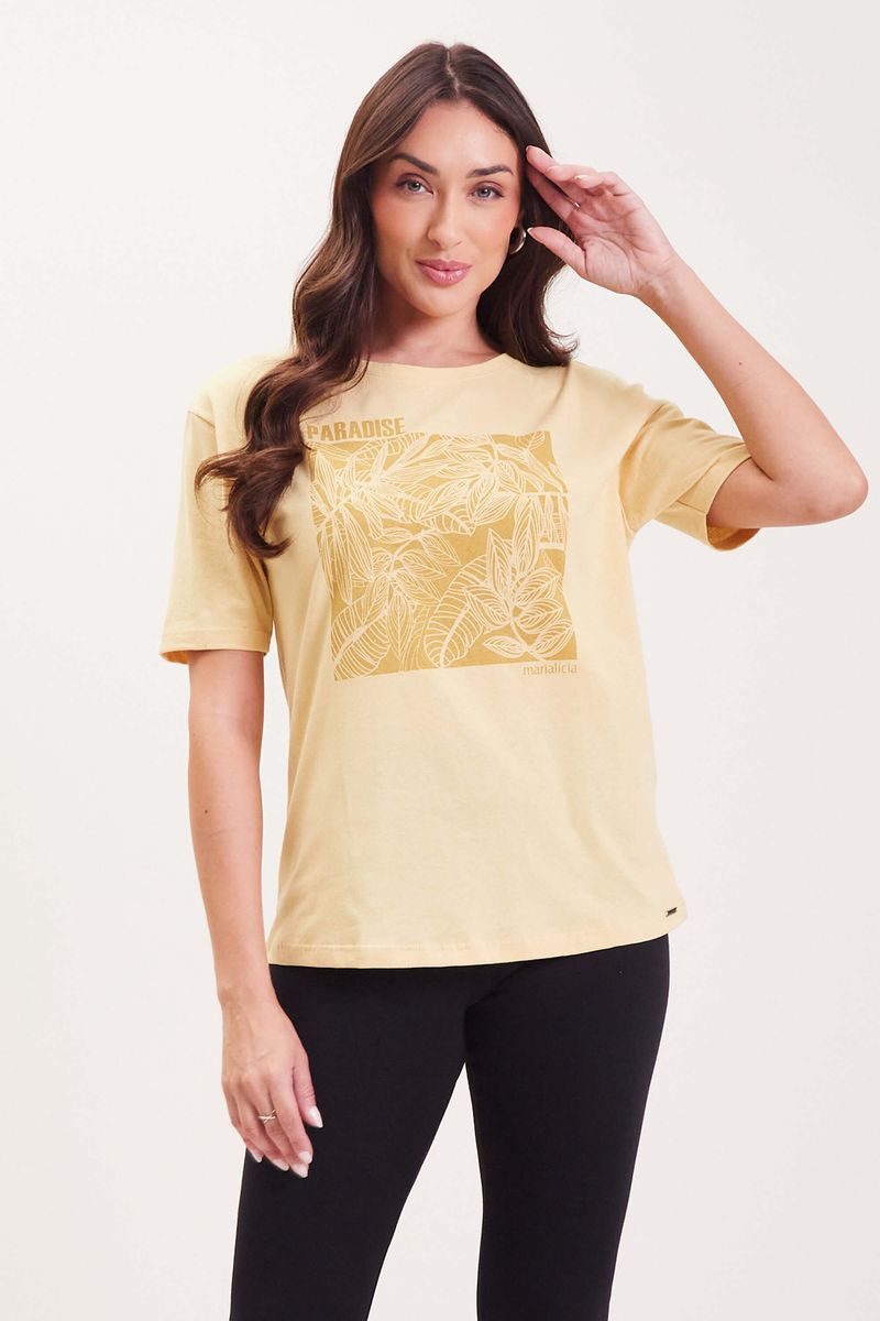 T-Shirt Feminina Folhas Marialícia Amarelo REF: 184197-3016