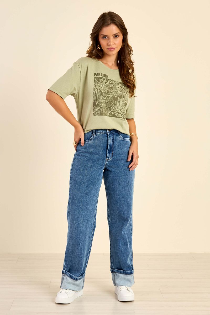 T-Shirt Feminina Folhas Marialícia Verde REF: 184197-5032