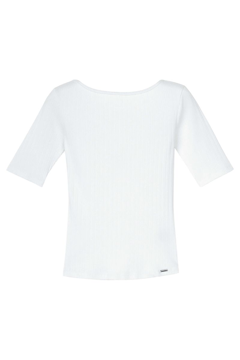 • Feita em malha canelada trabalhada • Possui comprimento intermediário • Possui mangas curtas alongadas • Possui decote U nas costas • Ideal para trabalho, dia a dia ou encontros descontraídos