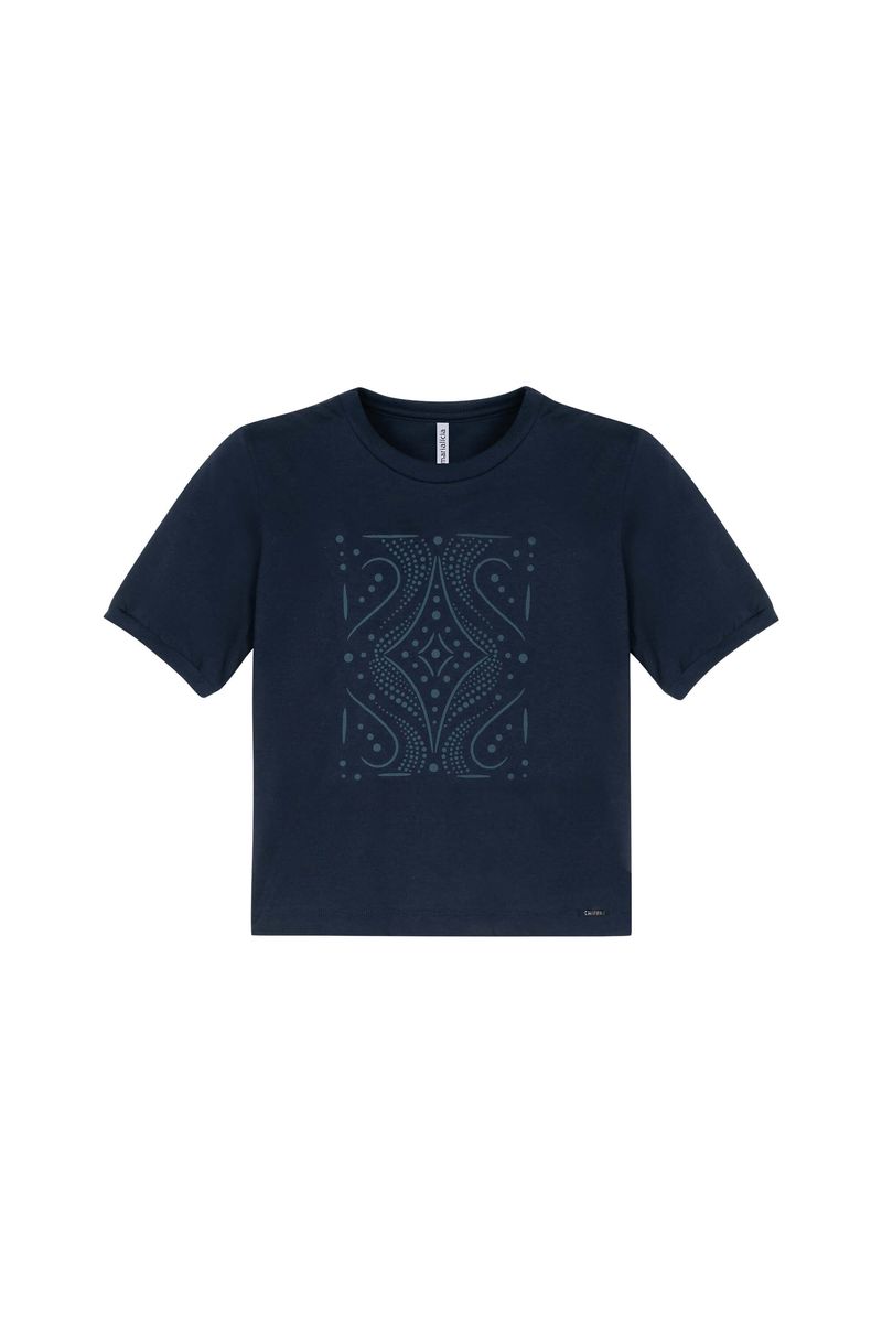 • Feita em meia malha • Possui mangas curtas com punhos • Possui comprimento intermediário • Possui estampa com efeito puff • Possui transpasse nas costas • Ideal para dia a dia