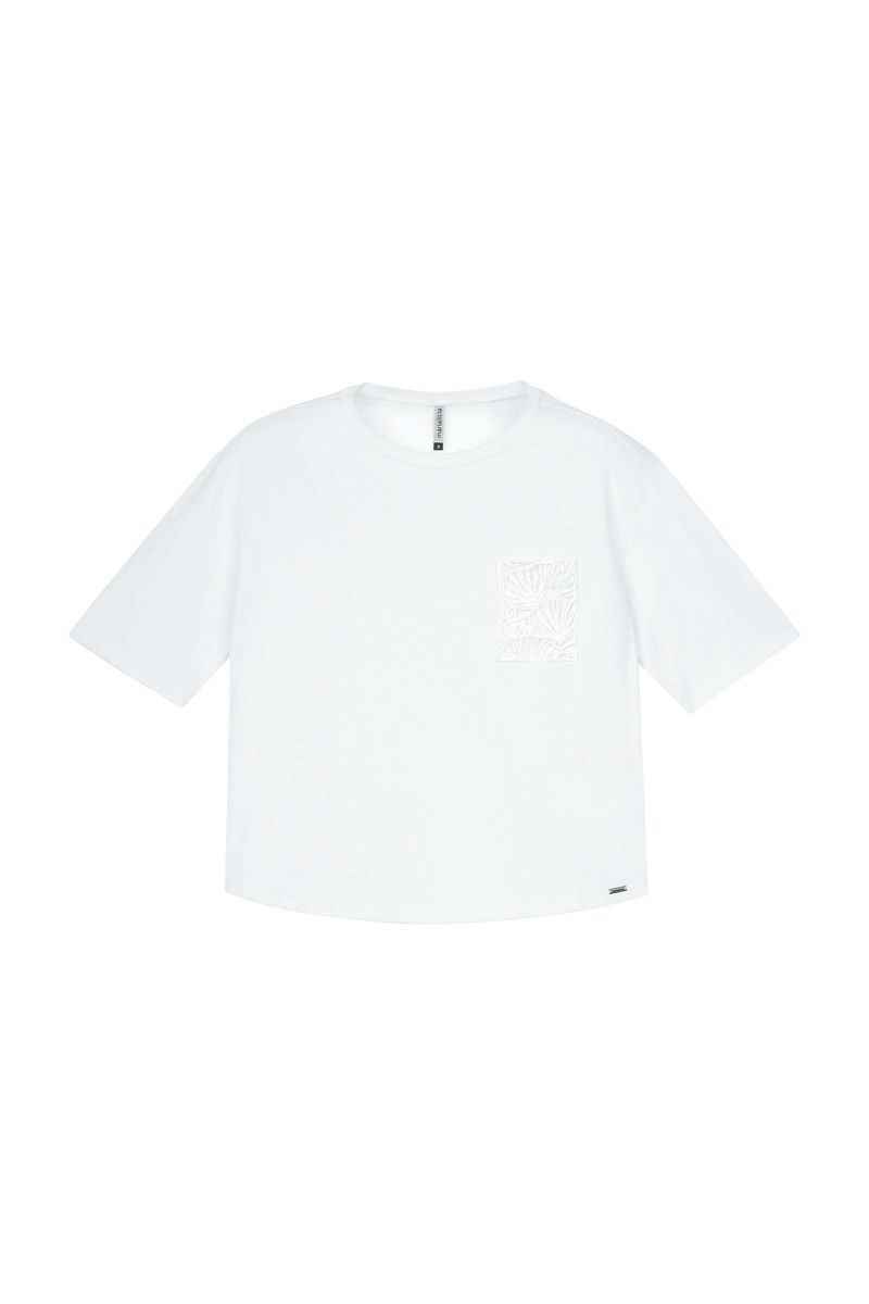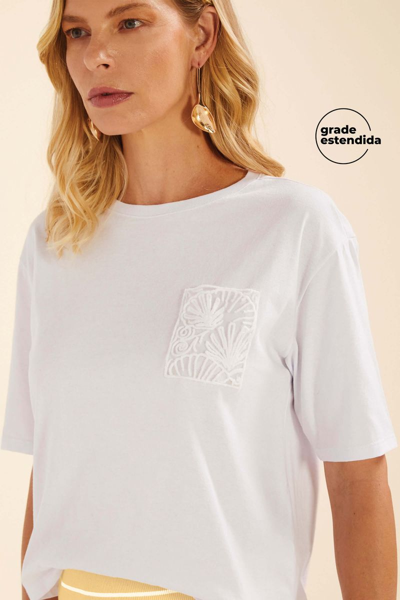 • Feita em meia malha • Possui comprimento regular • Possui mangas curtas alongadas • Possui bolso com detalhe bordado • Ideal para composições despojadas