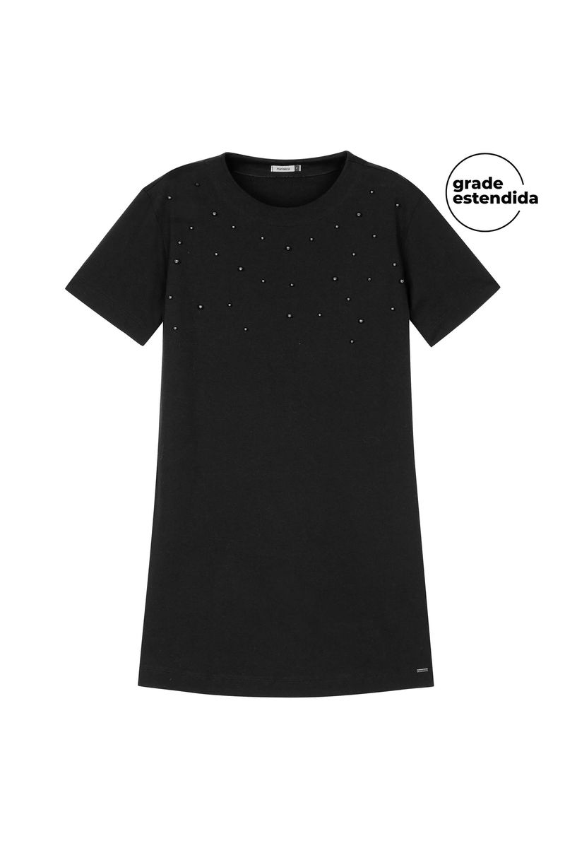• Feito em meia malha • Possui comprimento curto • Possui mangas curtas • Possui detalhe em pérolas • Ideal para compromissos diurnos ou eventos informais