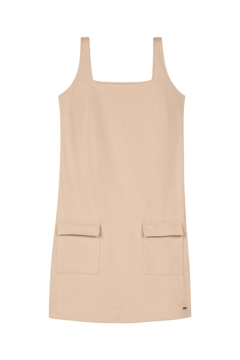 • Feito em moletinho texturizado • Possui comprimento curto • Possui alças • Possui bolsos frontais com lapela • Ideal para momentos casuais