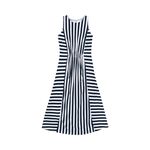 • Feito em malha crepe de viscose • Possui comprimento midi • Possui estampa com listras verticais e horizontais • Possui detalhe franzido com amarração • Ideal para momentos casuais, passeios e eventos ao ar livre