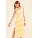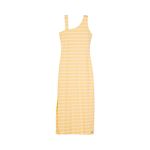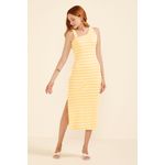• Feita em malha canelada listrada • Possui comprimento midi • Possui decote assimétrico com alça • Possui abertura lateral tipo fenda • Ideal para passeios e encontros especiais