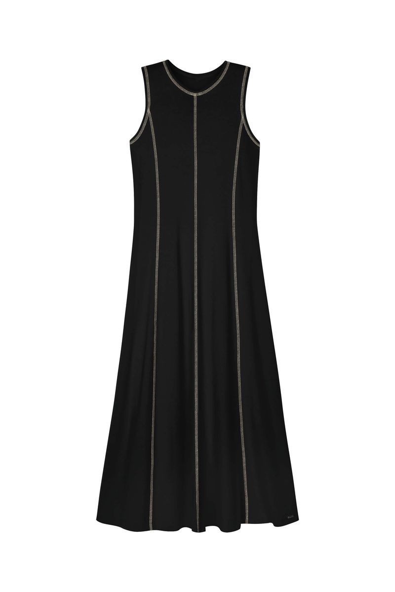 • Feito em malha crepe de viscose • Possui comprimento midi • Possui recortes com detalhe em fio contraste • Ideal para ir do trabalho ao happy hour