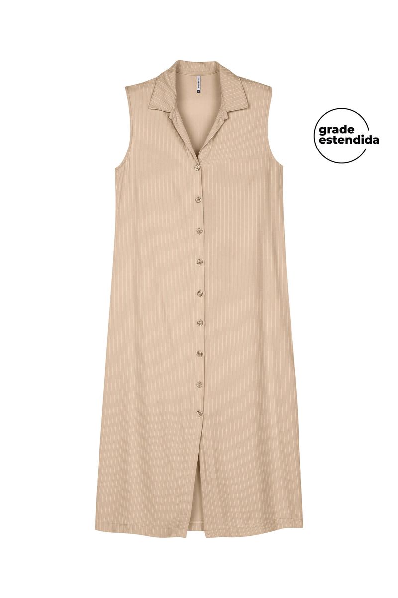 • Feita em tecido de viscose sarjada • Possui comprimento midi • Possui modelagem chemise • Possui abertura frontal em botões • Possui estampa listrada • Ideal para um office look