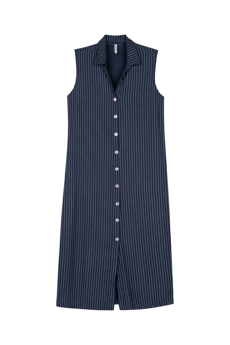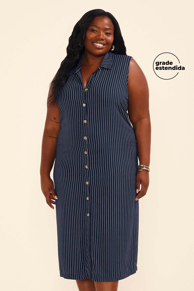 • Feita em tecido de viscose sarjada • Possui comprimento midi • Possui modelagem chemise • Possui abertura frontal em botões • Possui estampa listrada • Ideal para um office look