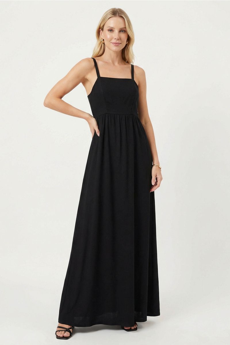 • Feito em tecido creponado • Possui comprimento longo • Possui alças ajustáveis com amarração • Possui recorte franzido na cintura • Ideal para ocasiões casuais e passeios ao ar livre
