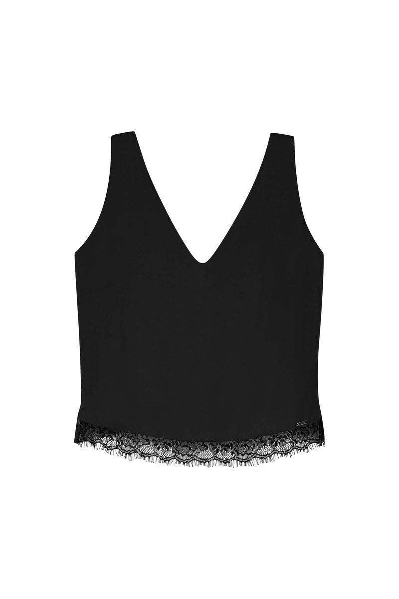 • Feita em tecido creponado • Possui comprimento regular • Possui alças • Possui decote V • Possui detalhe em renda na barra • Ideal para trabalho e happy hour