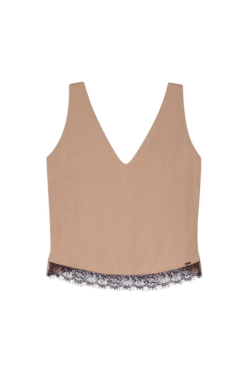 • Feita em tecido creponado • Possui comprimento regular • Possui alças • Possui decote V • Possui detalhe em renda na barra • Ideal para trabalho e happy hour