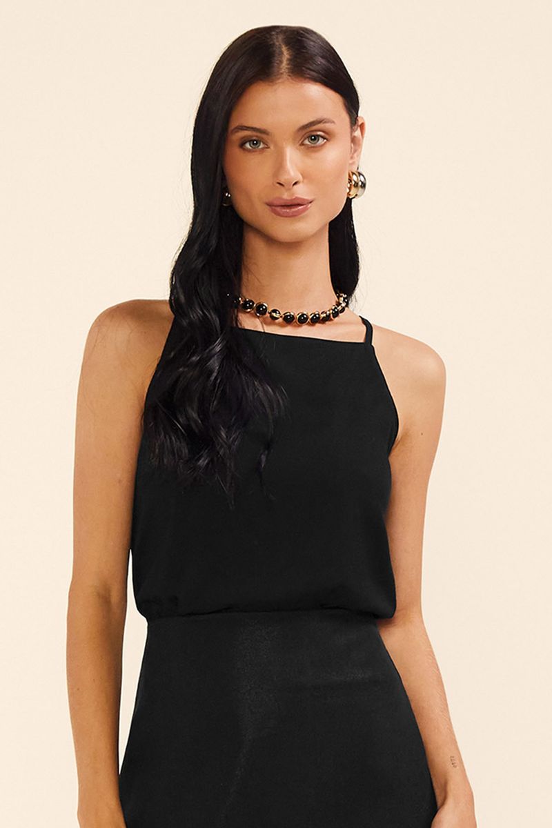 • Feita em tecido linho foil • Possui comprimento intermediário • Possui alças • Possui decote trapézio e costas mais abertas • Ideal para office look ou momentos de lazer