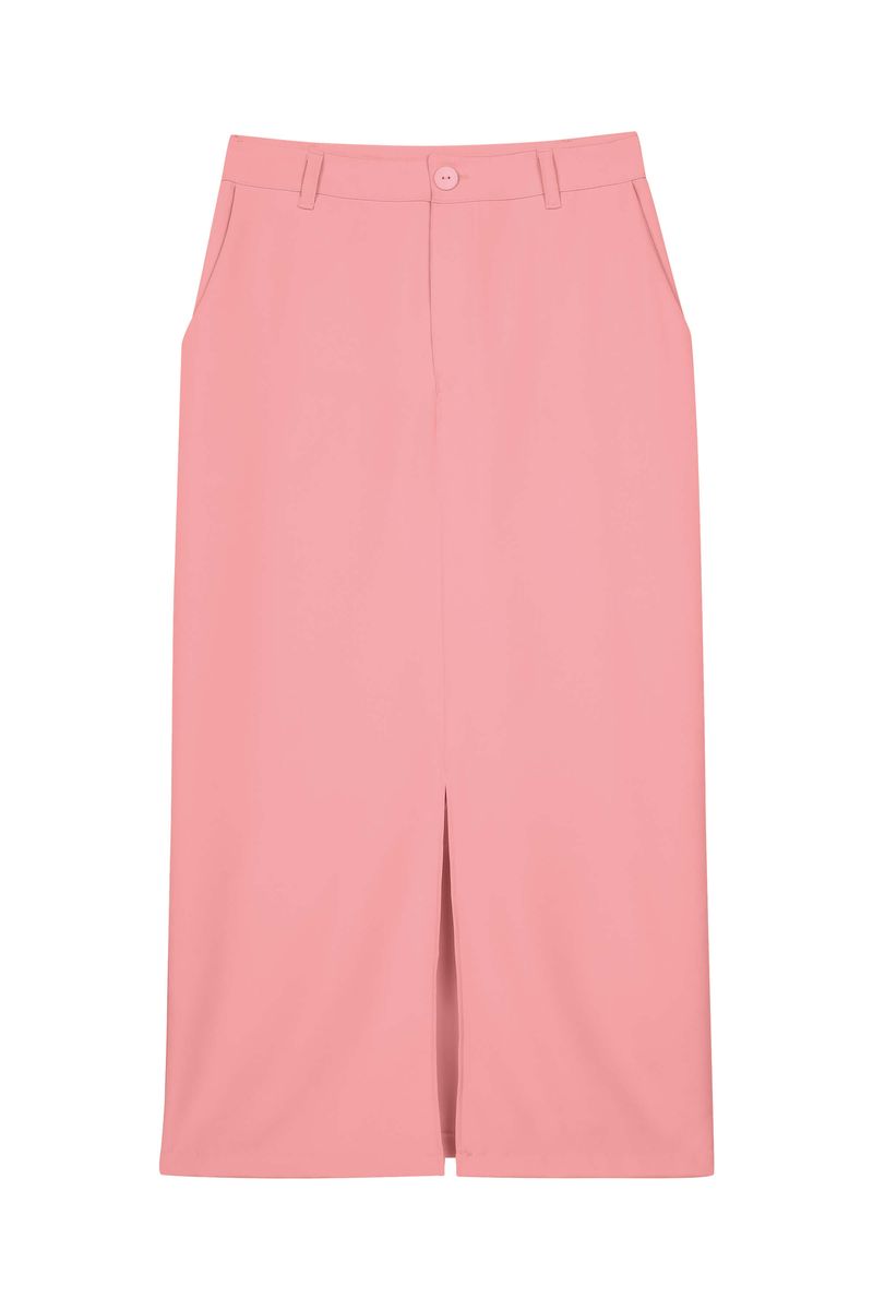 • Feita em alfaiataria • Possui comprimento midi • Possui cós anatômico • Possui fechamento em zíper com botão • Possui bolsos laterais • Possui detalhe em fenda • Ideal para looks de trabalho e ocasiões formais