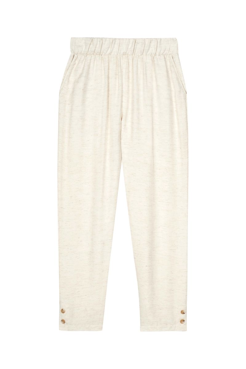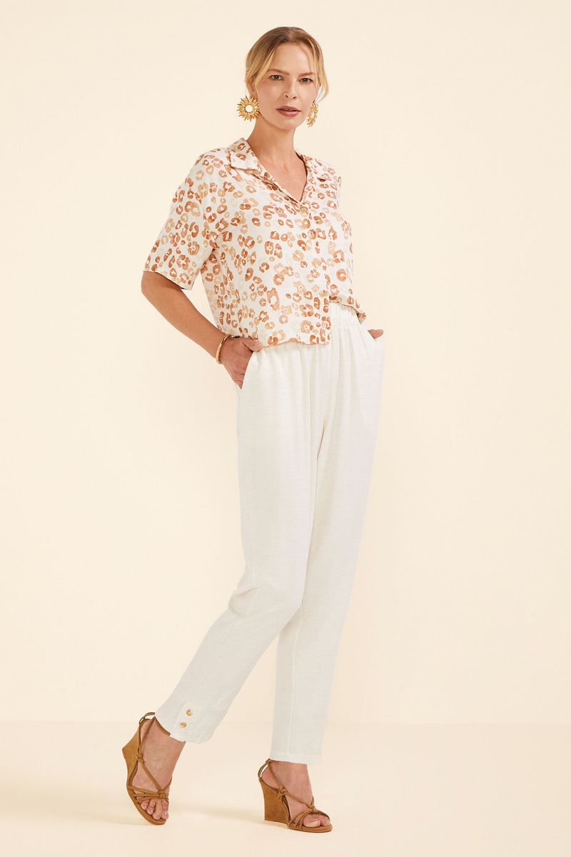 • Feita em tecido viscolinho • Elástico no cós • Possui bolsos • Possui botões decorativos • Ideal para trabalho e encontros especiais