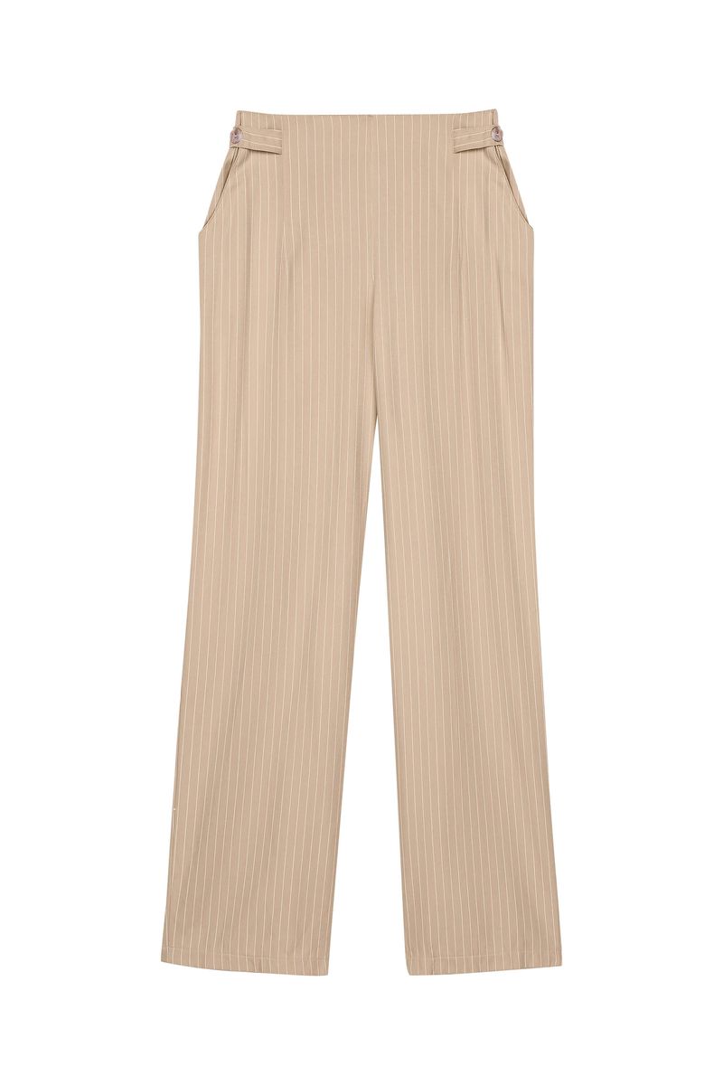 AdultoFemininoCalças FemininoCalça Feminina Listrada Reta Marialícia Bege