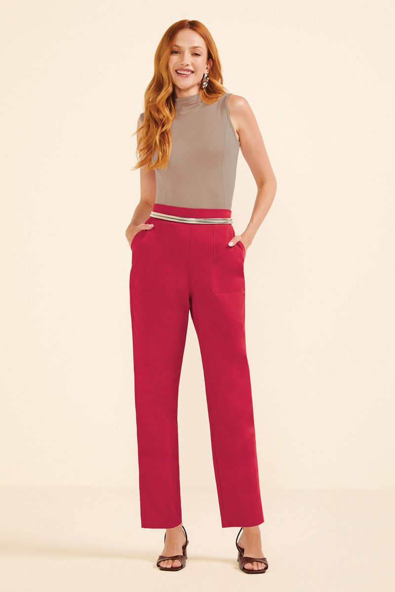 • Feita em sarja • Elástico no cós • Possui modelagem reta • Possui bolsos • Ideal para um office look e momentos de lazer