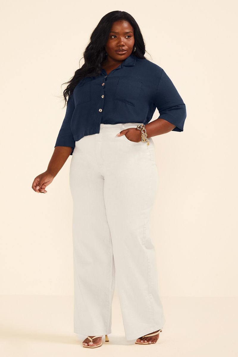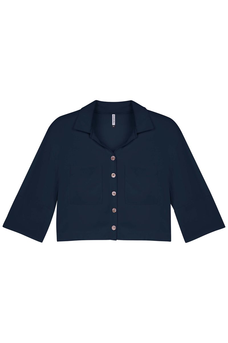 • Feita em tecido de viscose sarjada • Possui comprimento regular • Possui mangas 3/4 • Possui abertura frontal em botões • Possui bolsos frontais • Ideal para ir do trabalho ao café com as amigas