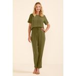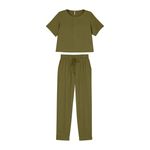 • Conjunto composto por blusa e calça • Feito em tecido de viscose • Possui mangas curtas • Elástico no cós com tira para amarração • Possui bolsos laterais • Ideal para momentos de lazer, viagens e para composições comfy