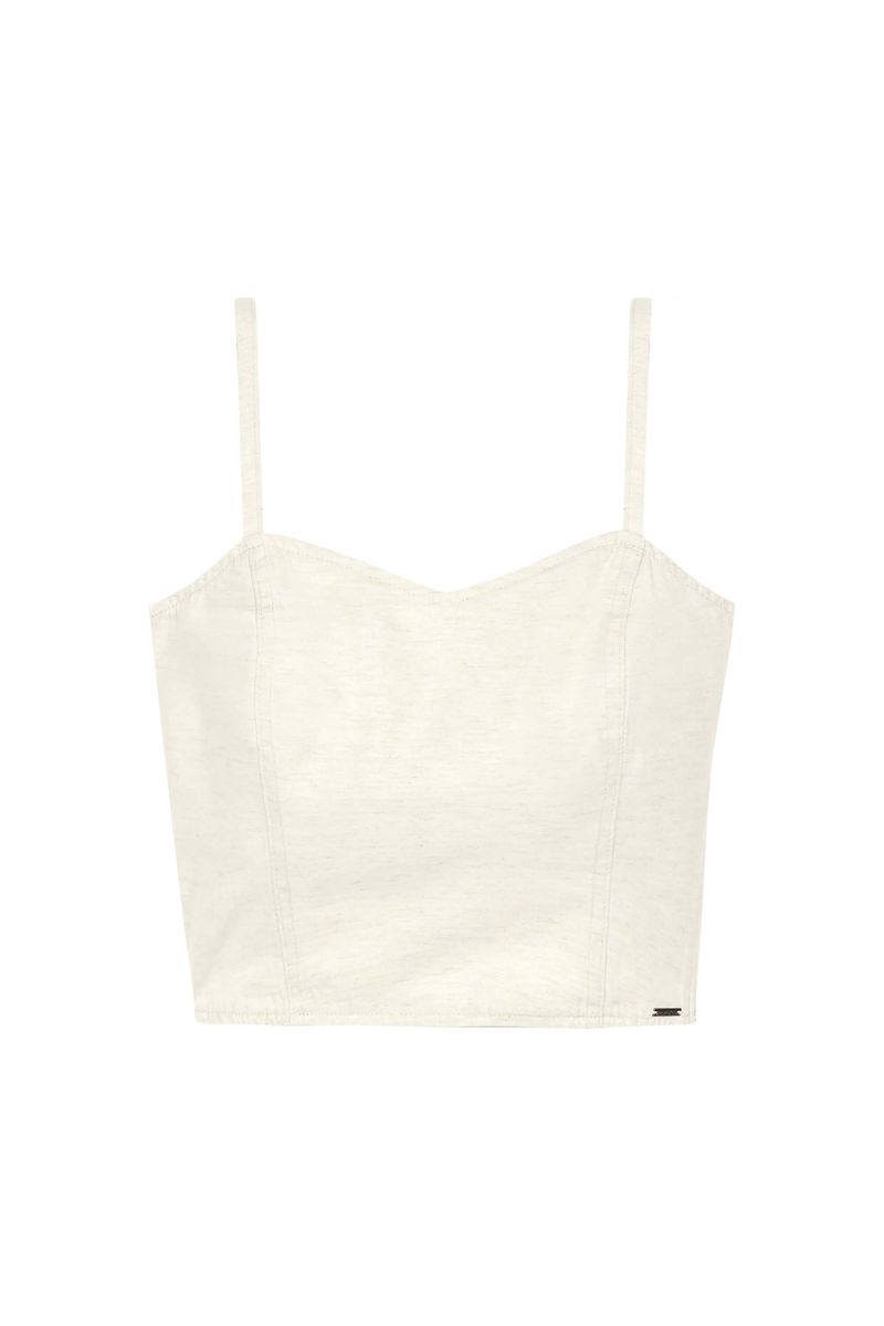 • Feito em linho • Possui comprimento cropped • Possui alças finas com regulador • Possui abertura em zíper • Possui decote coração • Ideal para diversas ocasiões