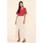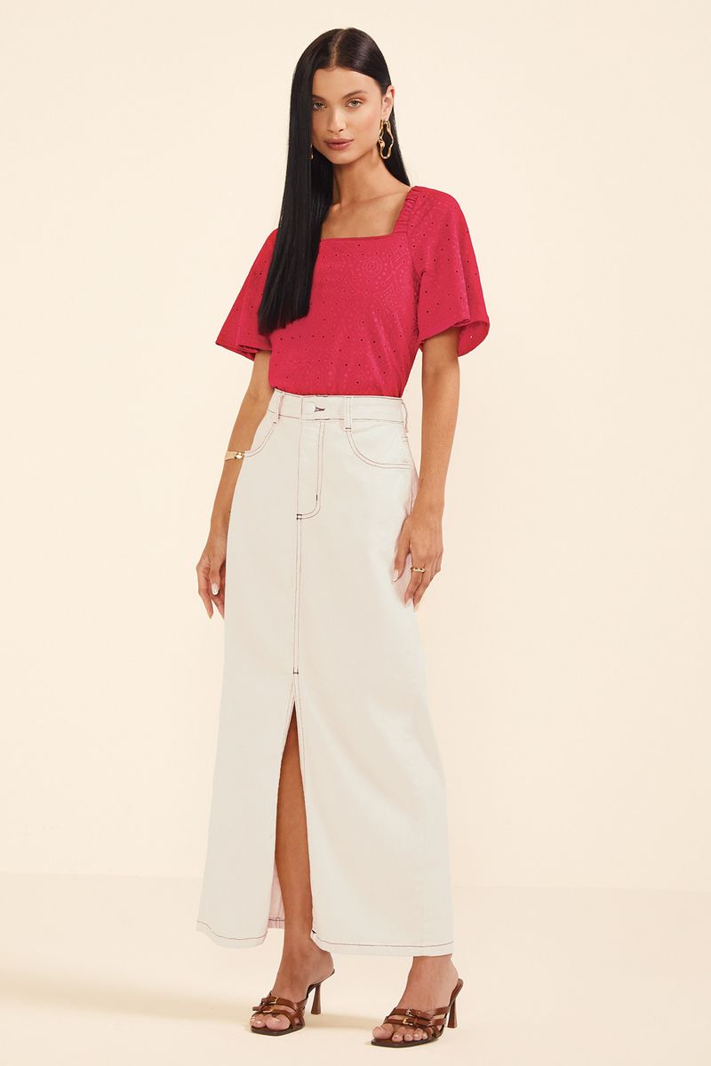 • Feita em sarja com elastano • Possui comprimento midi • Possui tecnologia de compressão • Possui fechamento em botão e zíper • Possui bolsos • Possui fenda frontal e nesga na parte de trás • Ideal para trabalho, passeios e encontros especiais