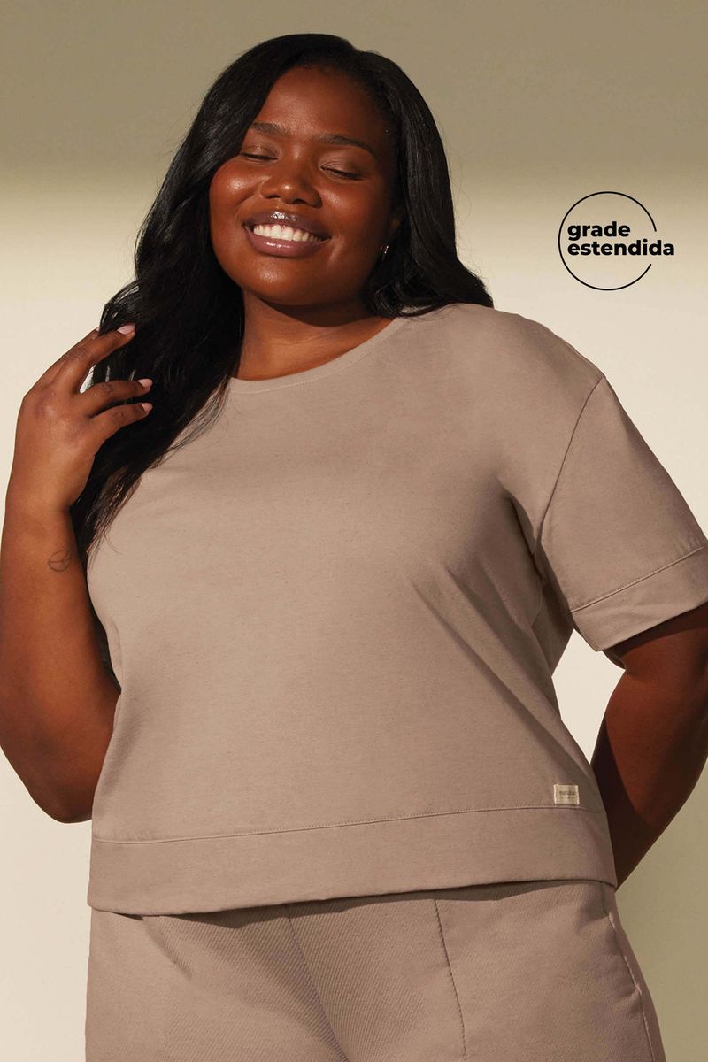 • Feita em malha eco linho • Possui comprimento regular • Possui mangas curtas • Possui detalhes em recortes • Ideal para momentos casuais e looks modernos