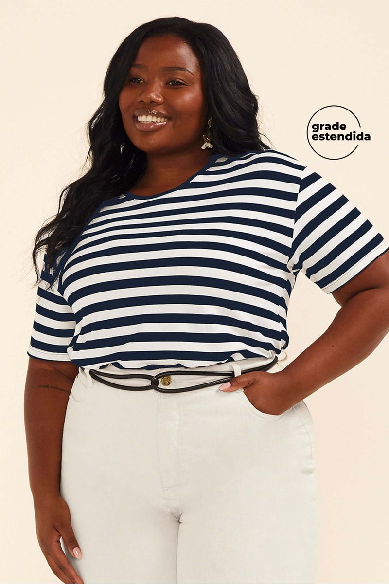 • Feita em malha crepe de viscose • Possui comprimento regular • Possui mangas curtas • Possui estampa listrada • Detalhe com a assinatura da marca nas costas • Ideal para usar com jeans, saias ou shorts