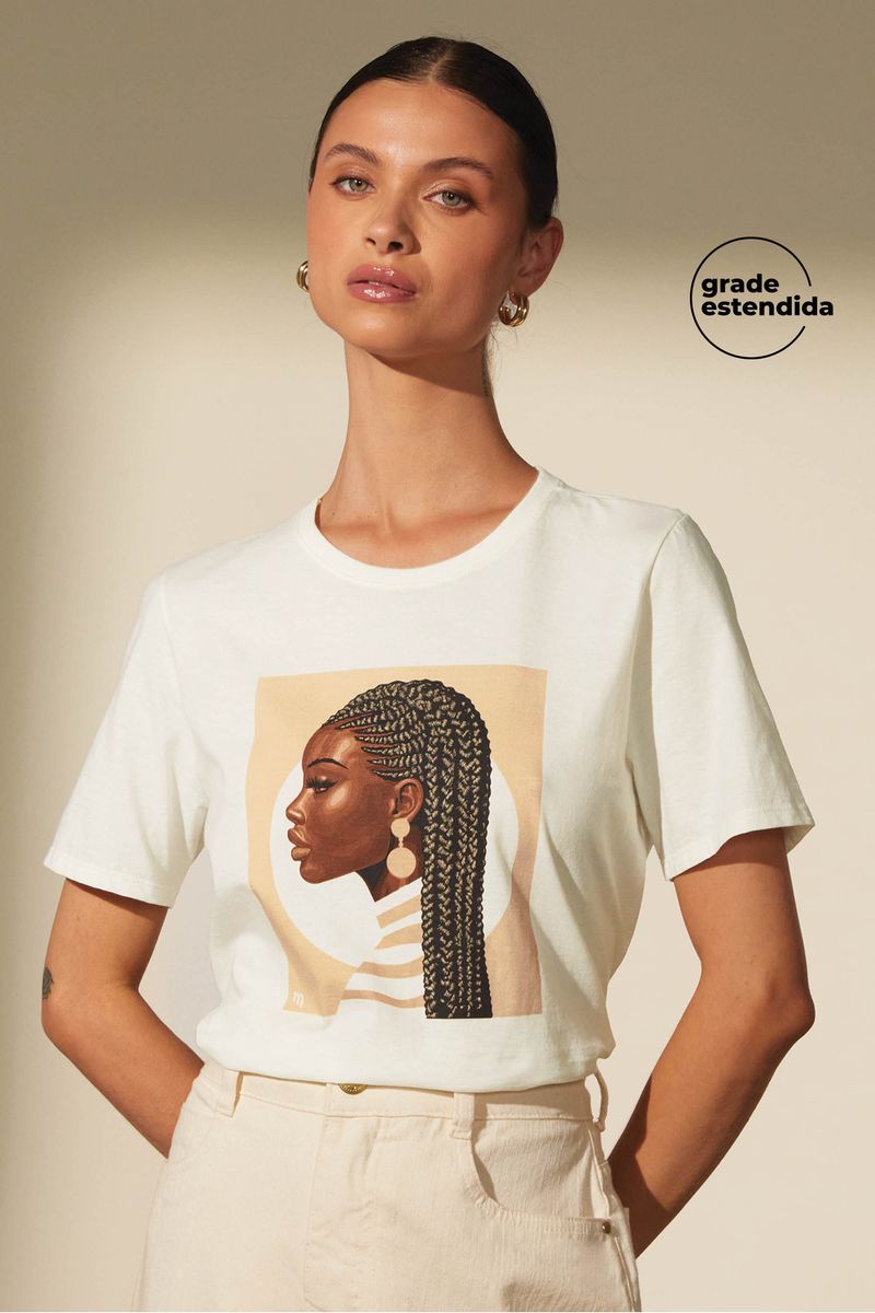 • Feita em meia malha • Possui comprimento regular • Possui mangas curtas • Possui estampa com retratos femininos • Ideal para o dia a dia