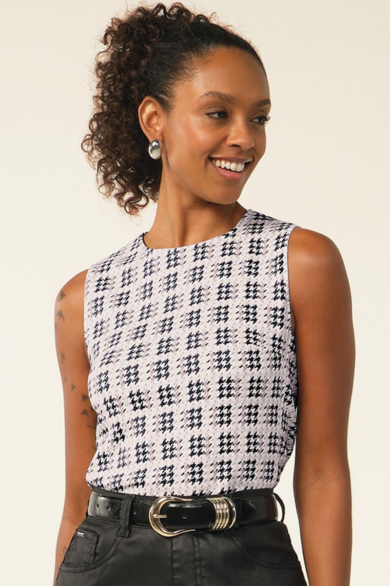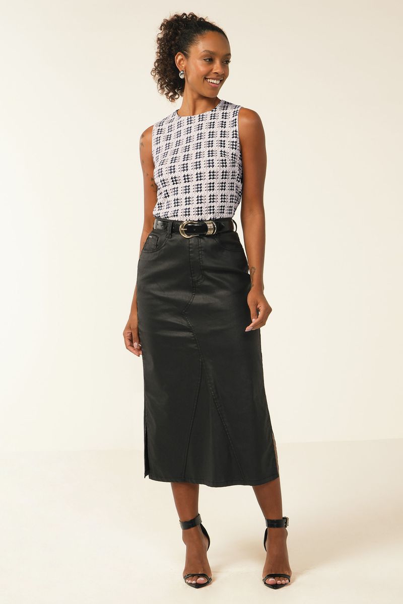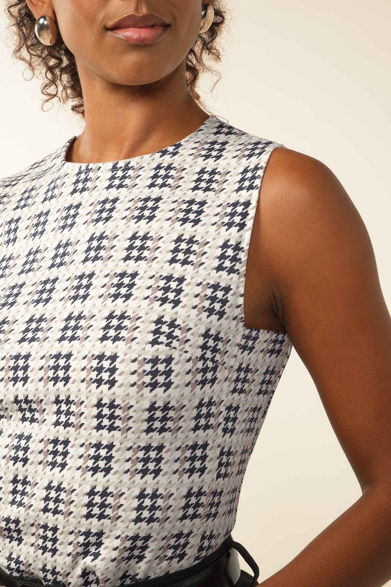 • Feita em moletom ponto roma • Comprimento intermediário • Detalhe em pence • Estampa pied de poule • Ideal para compromissos especiais ou trabalho