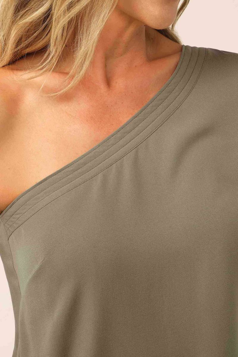 AdultoFemininoBlusas FemininoBlusa Feminina Um Ombro Só Longa Marialícia Verde