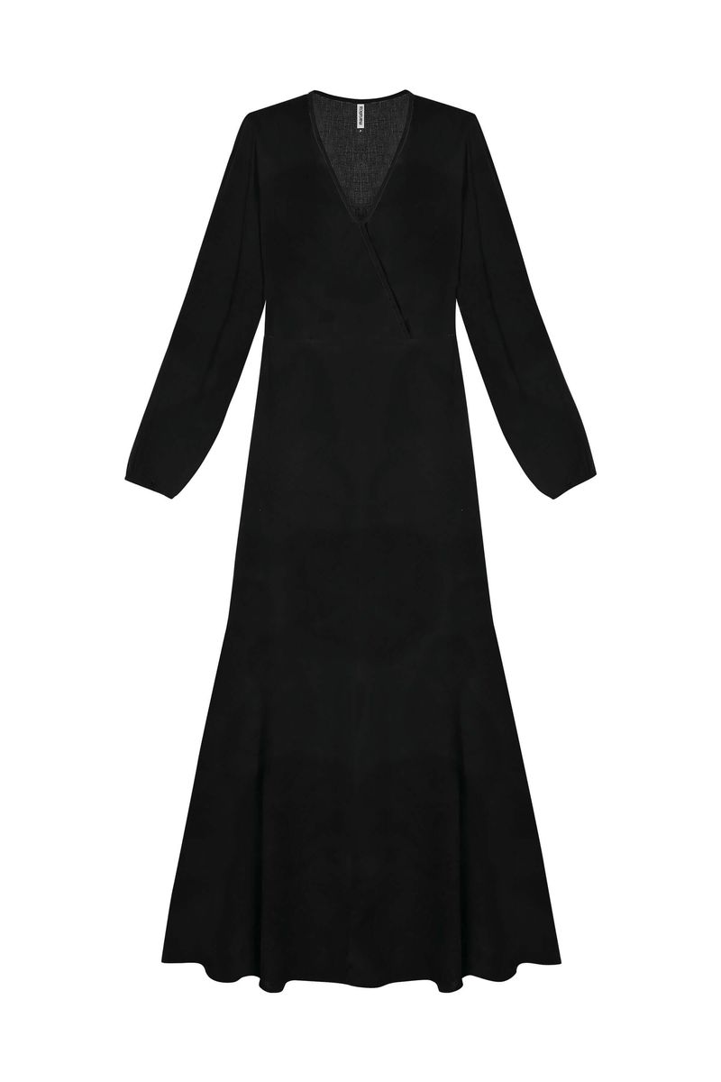 • Feito em tecido de viscose • Comprimento longo • Modelagem evasê • Possui mangas longas • Decote V com transpasse falso • Ideal para eventos especiais e até mesmo dia a dia