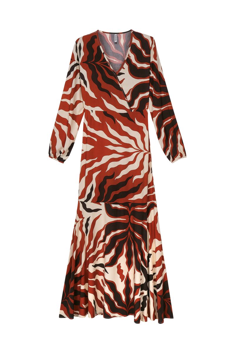 • Feito em tecido de viscose • Comprimento longo • Modelagem evasê • Possui mangas longas • Decote V com transpasse falso • Ideal para eventos especiais e até mesmo dia a dia