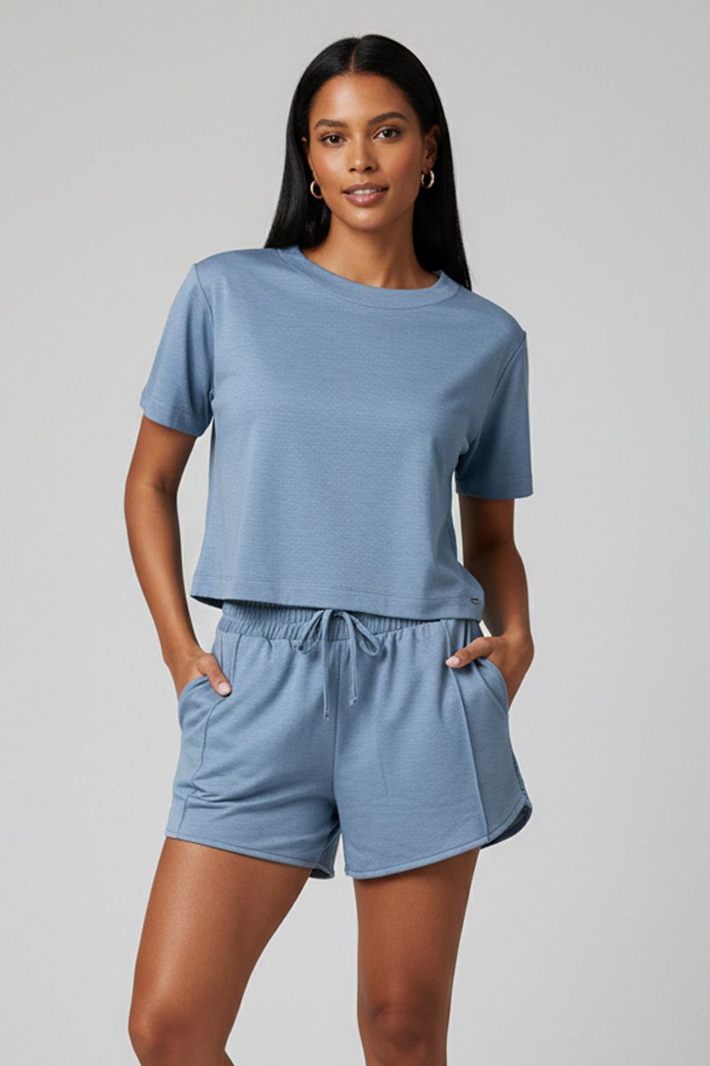AdultoFemininoConjuntos FemininoConjunto Curto Feminino Malha Dublada Marialícia Azul Claro