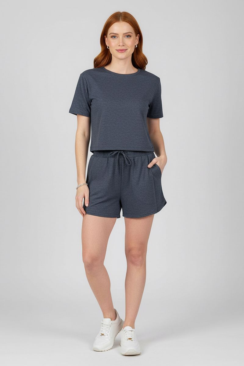 Conjunto Curto Feminino Malha Dublada Marialícia Preto REF: 184568-7001