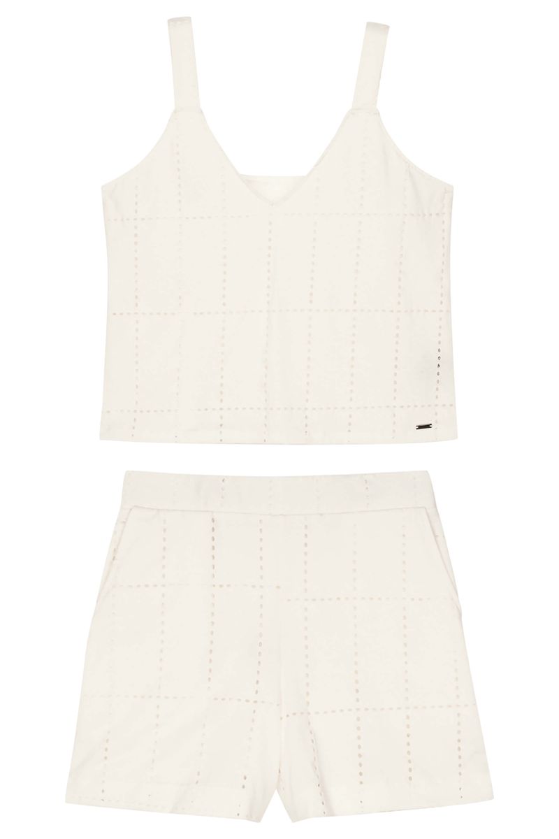 • Conjunto composto por regata e short • Feito em meia malha de algodão devorê • Possui comprimento regular • Possui alças com decote V • Possui elástico no cós • Possui bolsos • Possui forro • Ideal para passeios, momentos de lazer e almoços especiais