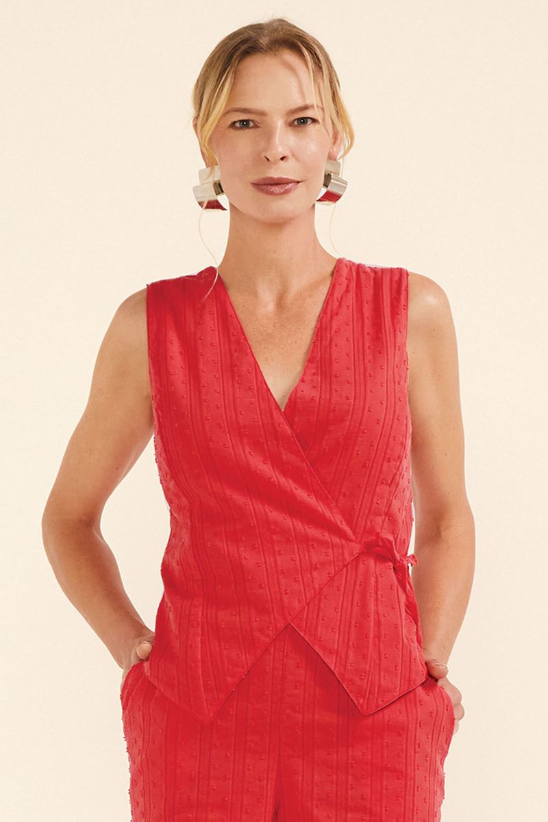 Colete Feminino Transpassado Textura Marialícia Vermelho REF: 184577-4065