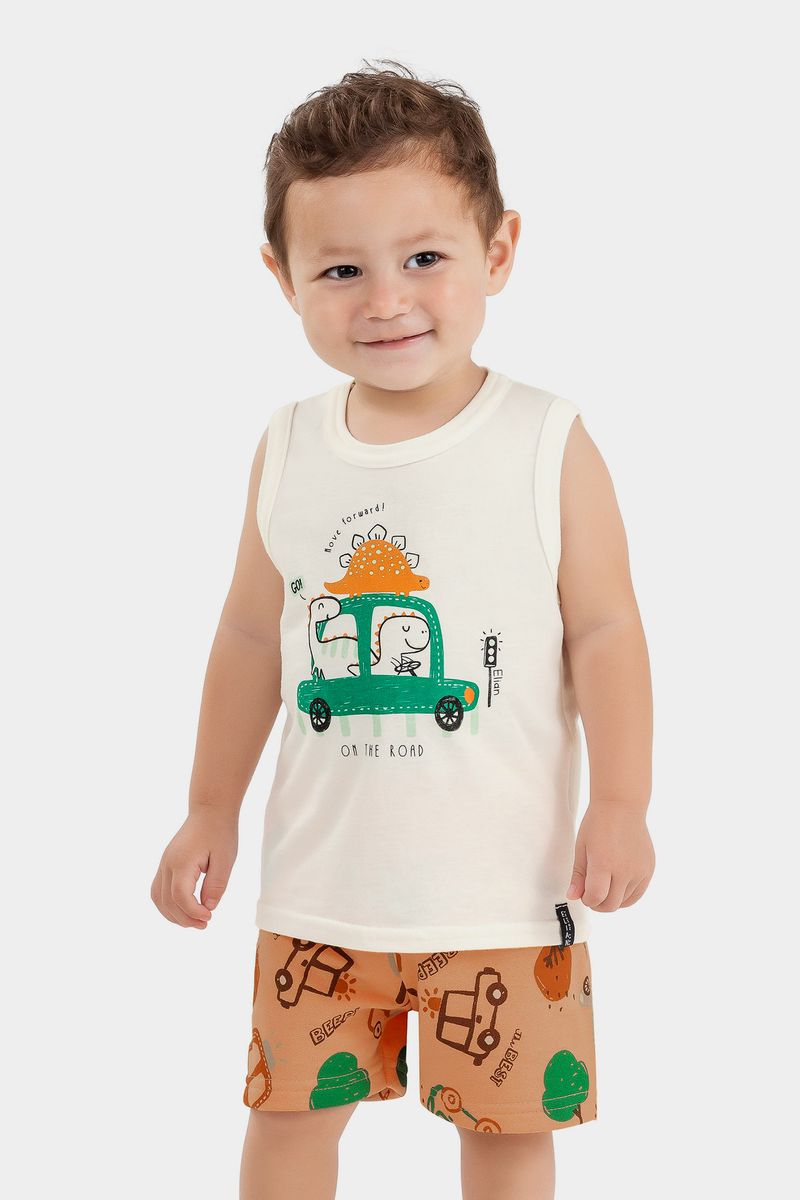BabyMeninos BabyConjuntos Baby MeninosConjunto Bebê Menino Regata Dino Elian Bege