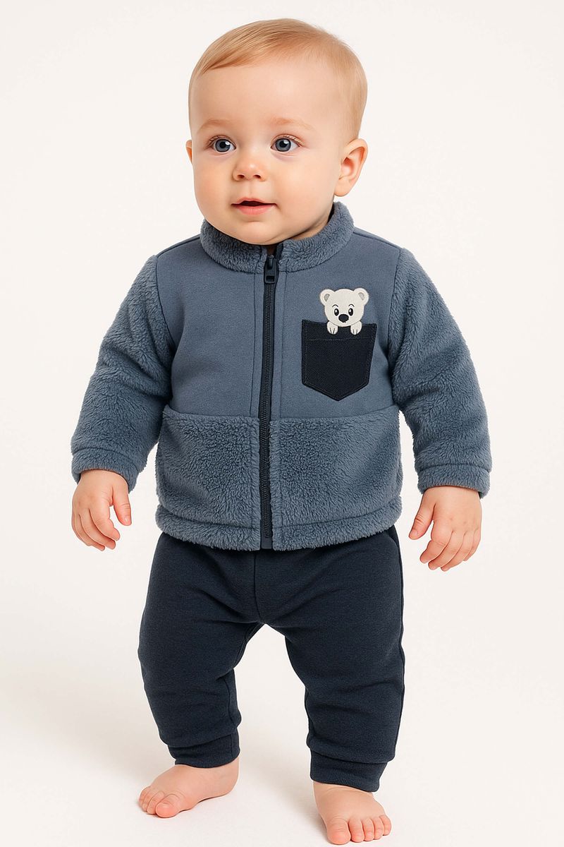 BabyMeninos BabyConjuntos Baby MeninosConjunto Longo Bebê Menino Jaqueta Peluciada Elian Azul