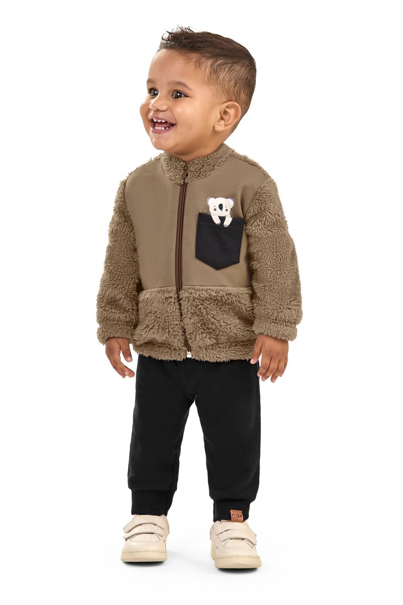 Conjunto Longo Bebê Menino Jaqueta Peluciada Elian Marrom REF: 201266-8035