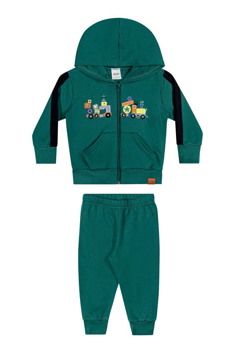 Conjunto Bebê Menino Moletom Trenzinho Elian Verde REF: 201268-5111